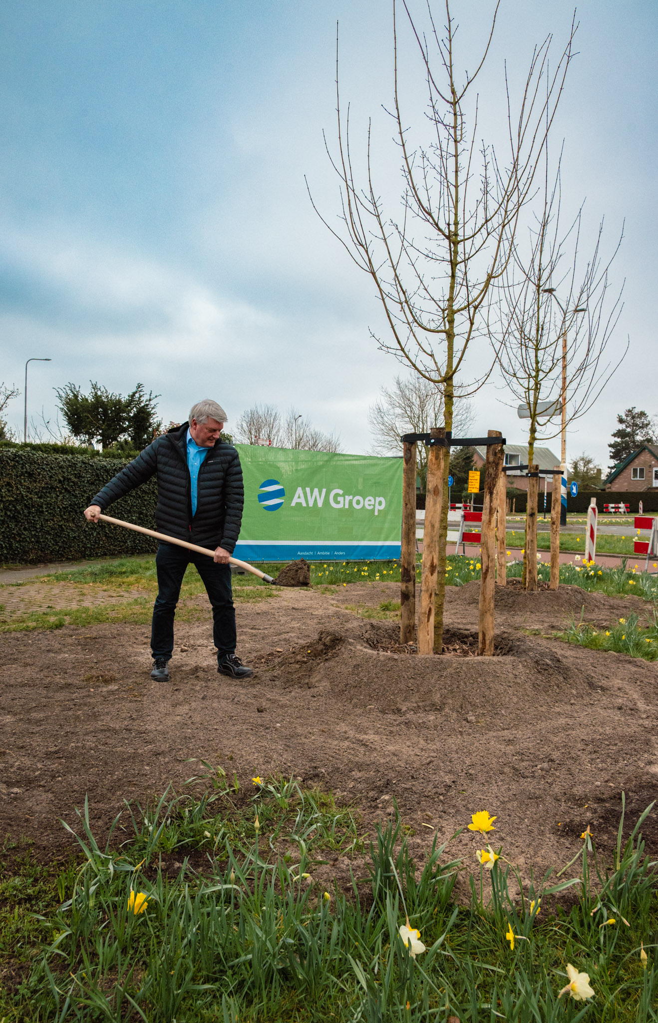 De wethouder gaf symbolisch het startsein door de laatste schep grond aan te brengen bij de eerste 17 bomen. In de komende vier jaar zullen wij groeiplaatsen realiseren, bomen planten en zorgen voor onderbeplanting, inclusief structureel onderhoud.