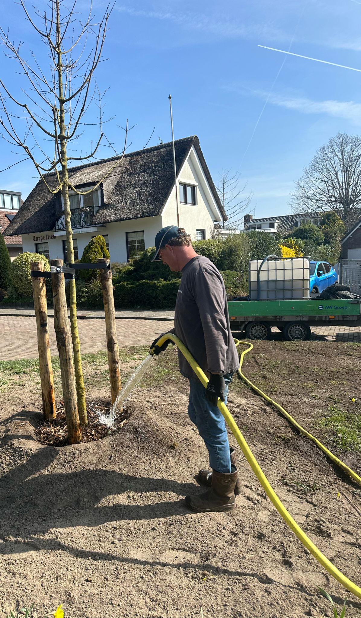 Een bijzonder aspect van dit project is het gebruik van vochtmeters bij de geplante bomen. Deze technologie stelt ons in staat om de bodemvochtigheid continu te monitoren. Zodra de grond te droog wordt, ontvangen wij een seintje, waardoor we op het juiste moment water kunnen geven. Dit draagt bij aan een efficiënte verzorging en een optimale groei van de bomen.