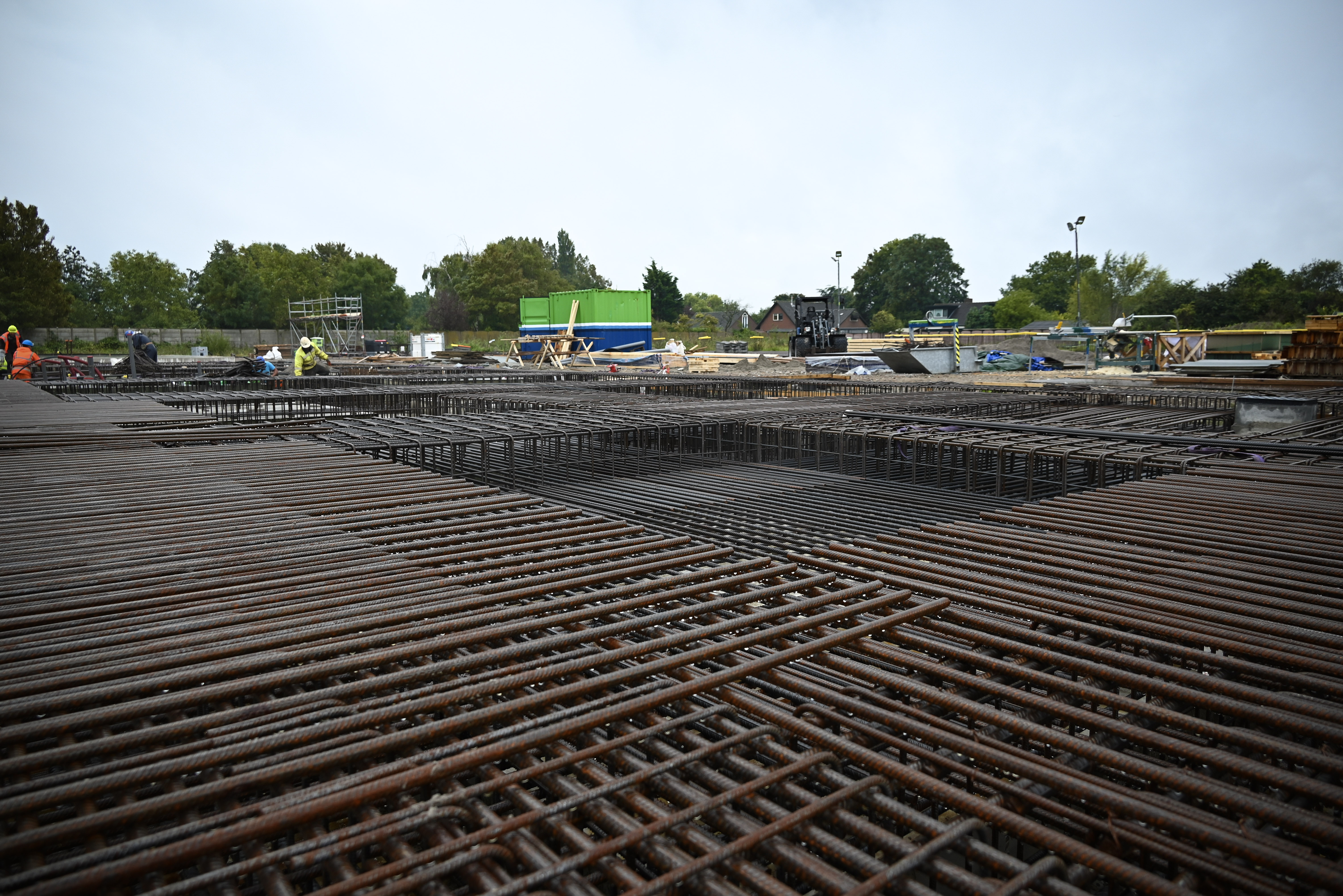 In dit project was een van de uitdagingen de noodzaak van een betonnen vloer met een hoge dichtheid. Deze hoge dichtheid was essentieel vanwege verschillende factoren. Ten eerste moest de vloer vloeistofdicht zijn om te voldoen aan de strenge regelgeving van de overheid, vooral gezien de aard van de activiteiten in de grondstoffenhal voor afvalinzameling en verwerking. De bescherming tegen het lekken van oliën en andere verontreinigende stoffen in de bodem is van groot belang voor milieu- en gezondheidsredenen, en past bij het streven van Meerlanden naar een afvalvrije samenleving en duurzame toekomst. Bovendien vereiste de realisatie van een vloeistofdichte betonvloer nauwkeurige planning en zorgvuldige uitvoering, met speciale aandacht voor de wapening tijdens het betonstorten. Dankzij het vakmanschap en de toewijding van ons team hebben we deze uitdaging met succes overwonnen, waardoor Mobilis verder kan gaan met de bouw van de opslaghal.