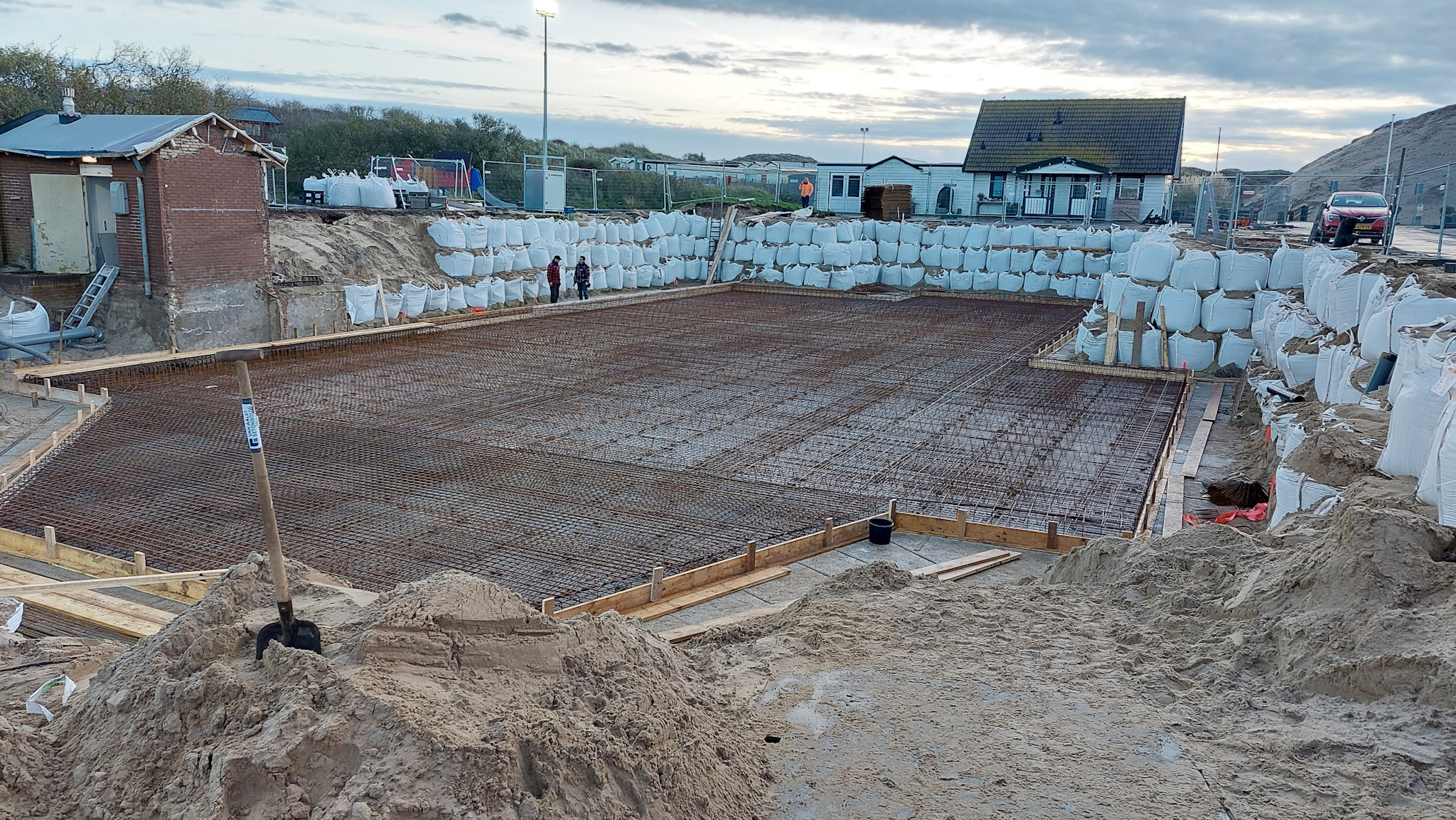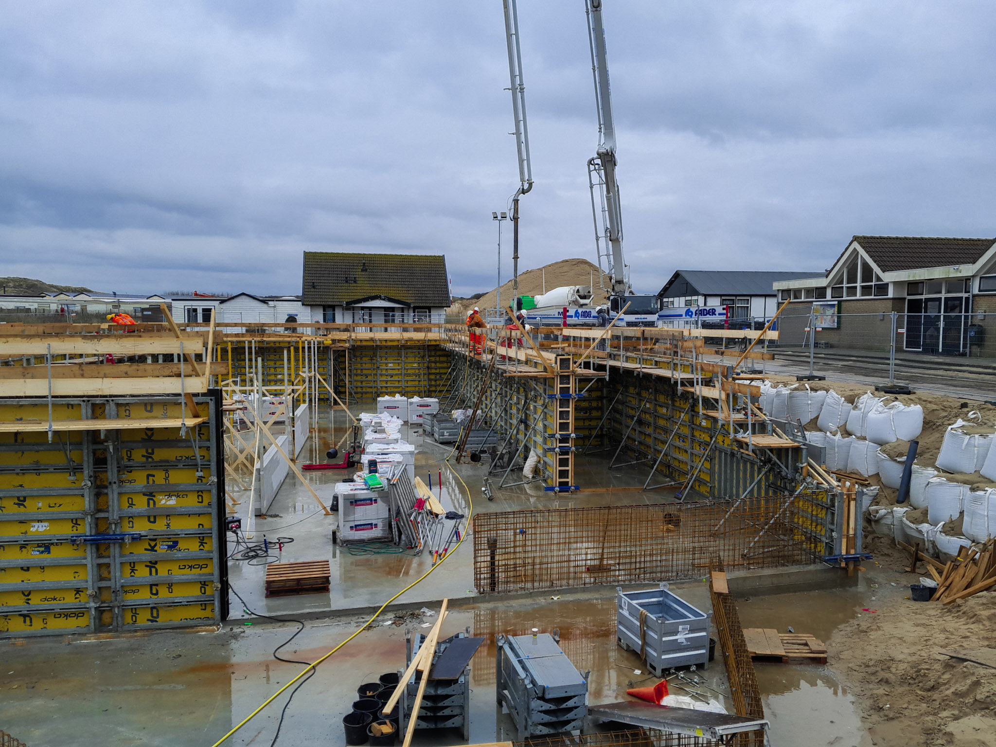 In opdracht van Ouwehand Bouw Plus heeft AW Infrabouw de betonnen kelder gemaakt voor de nieuwbouw van het centrumgebouw van Strandcamping Zuidduinen in Katwijk.