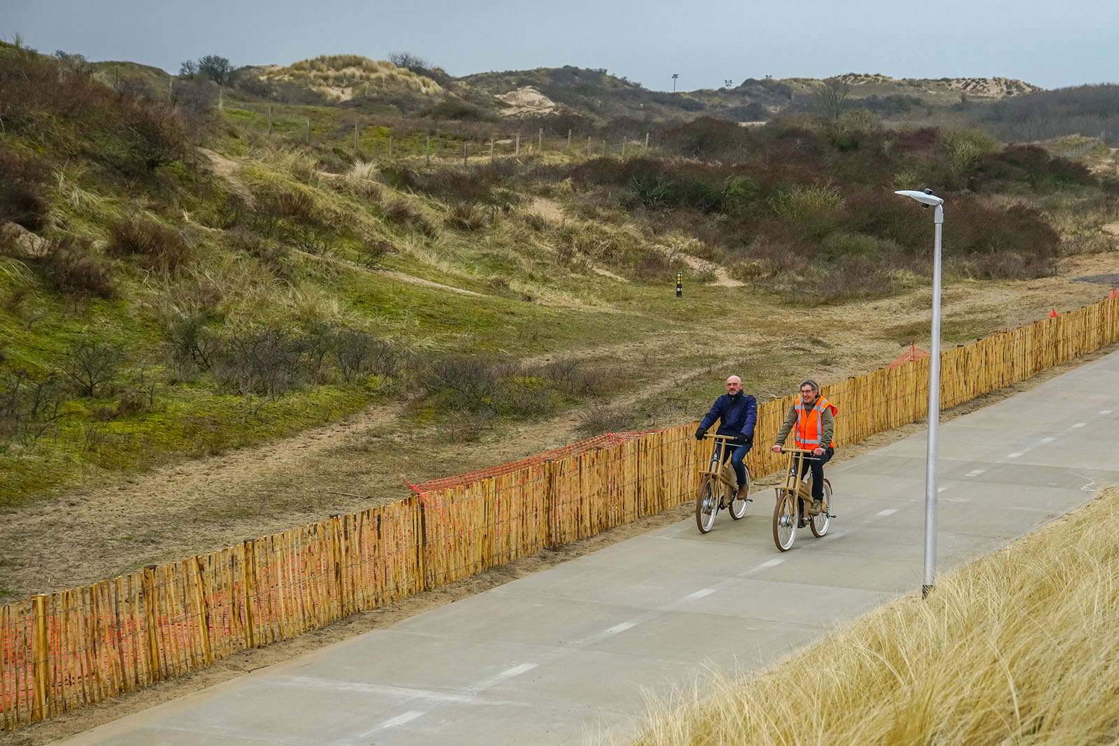 Voor de realisatie van het fietspad is gebruik gemaakt van duurzame materialen. Zo is er onder andere gekozen voor betonplaten in plaats van asfalt. De betonplaten zijn duurzaam geproduceerd, gaan langer mee dan asfalt en hebben bijna geen onderhoud nodig. De wandelpaden zijn uitgevoerd met schelpen, zodat een natuurlijke uitstraling behouden blijft. Een andere duurzame toepassing is led verlichting, voorzien van Tvilight aansturing, waarbij rekening wordt gehouden met de natuur en de omwonenden. Deze verlichting beweegt in het donker met de fietser mee door geleidelijk genoeg op te lichten voor goed zicht, en wordt vervolgens gedimd. Hierdoor is er minder sprake van lichtvervuiling en energieverspilling.