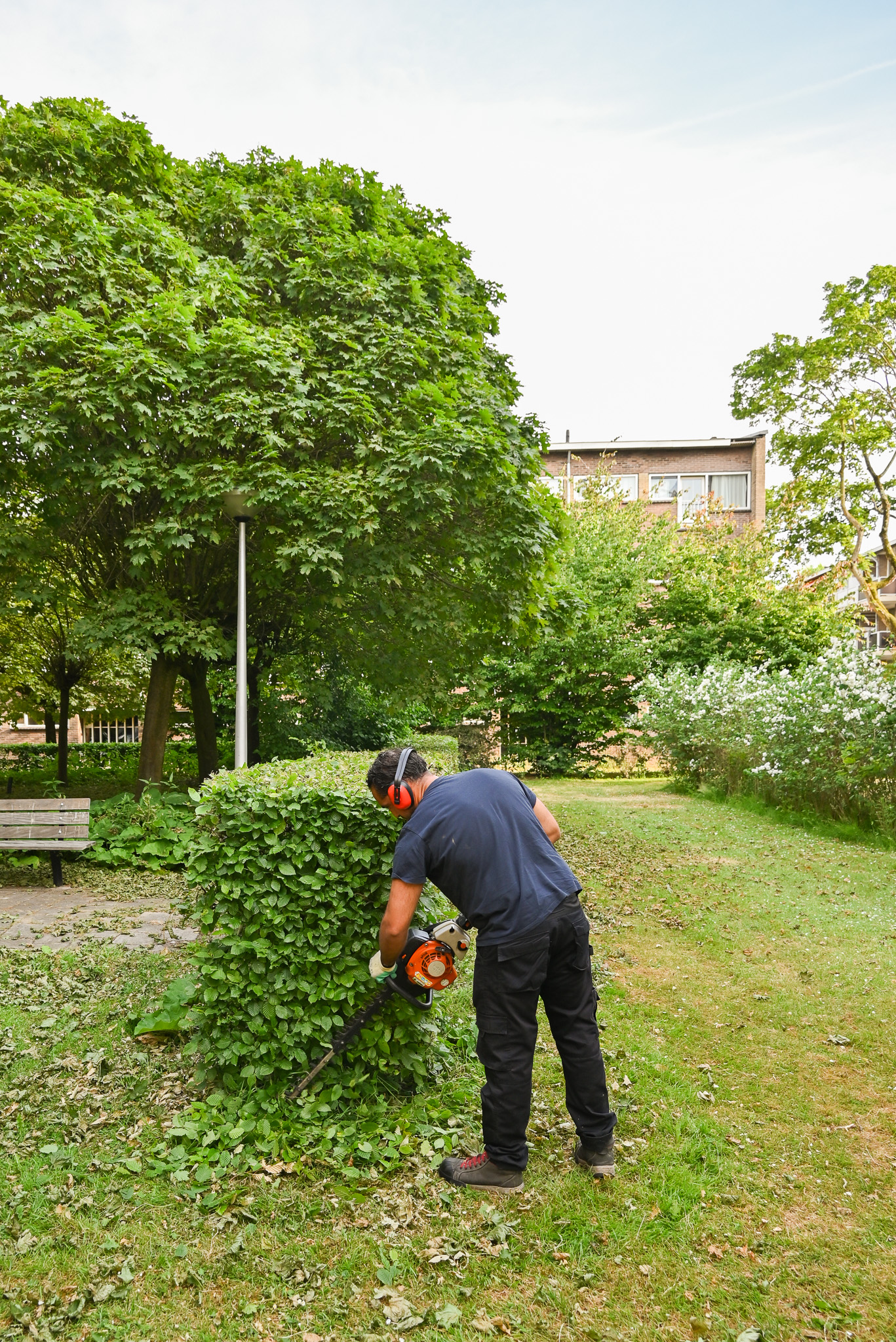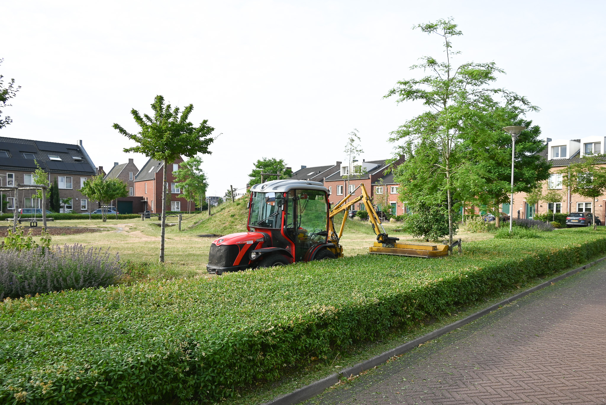 Twee tot drie keer per jaar voeren wij onderhoud uit in de vorm van het knippen van de hagen. Dit doen wij met een heggenknipper op de machine. Handmatig knippen we de heg nog iets bij.