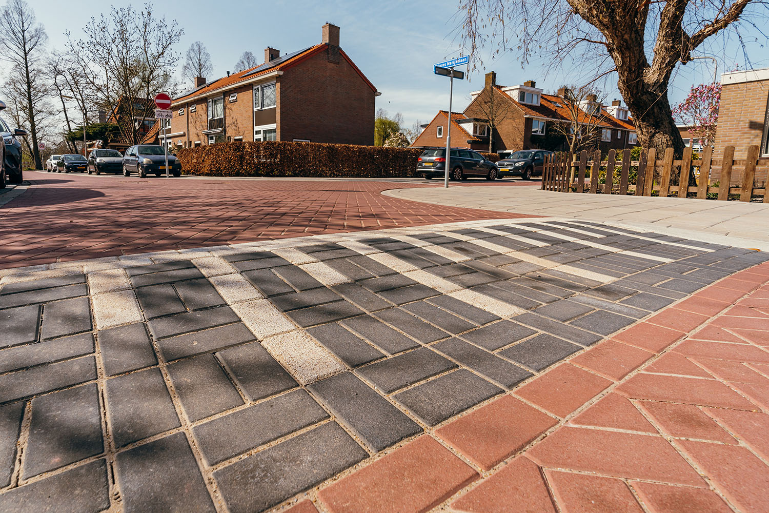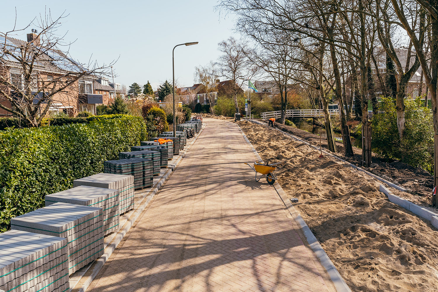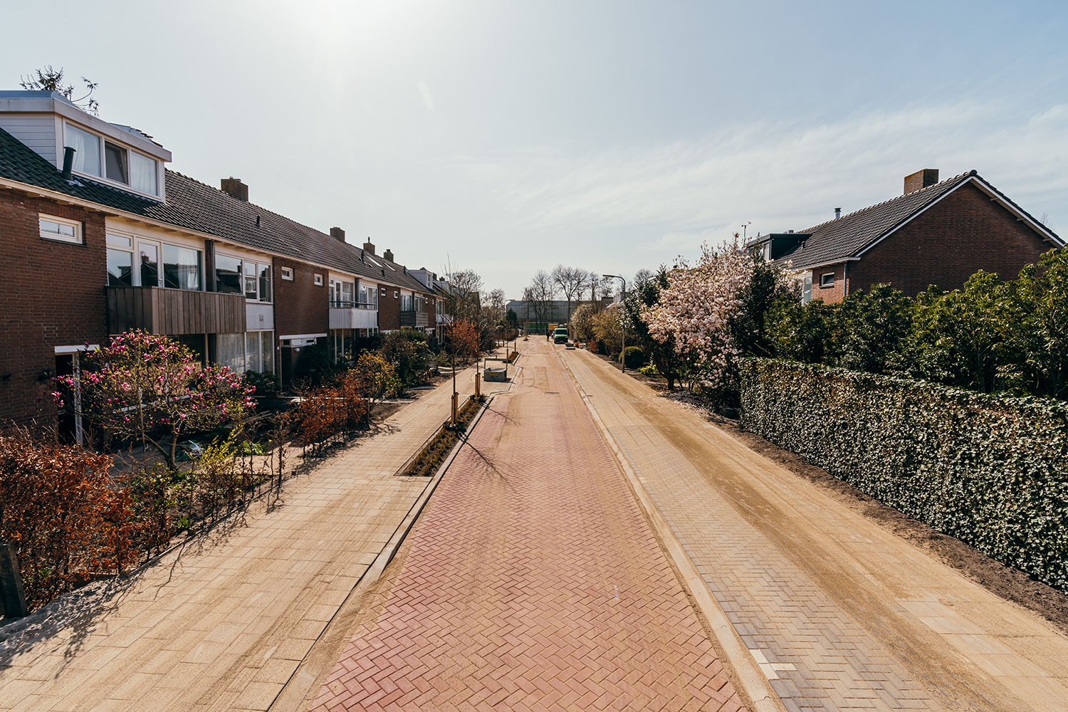 Om de wijk een frisse nieuwe look te geven, is ervoor gekozen om na de ophoging, het straatwerk te vernieuwen. Al het oude straatwerk wordt circulair hergebruikt. Alle betonklinkers, tegels en banden worden gebroken door AW Grondstoffen. Het gebroken beton wordt gebruikt voor nieuw circulair beton en menggranulaat.