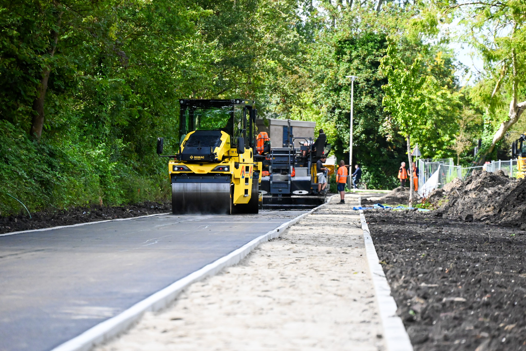 - Kan het met hergebruik? Dit hebben we weten te doen door zand en granulaat vanaf een ander project van AW Groep te gebruiken. Er zijn ook bestaande funderingen onder de bestaande paden hergebruikt.
