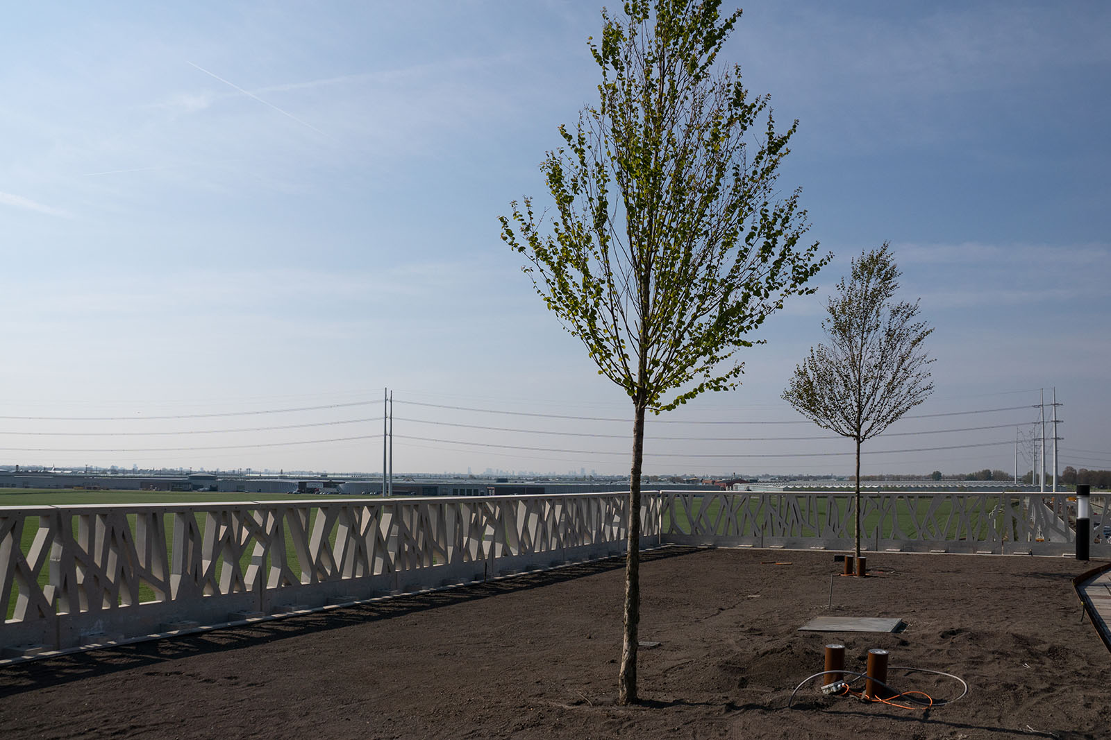 Het efficiënt aanvoeren en verwerken van alle producten was een logistiek hoogstandje, zeker in relatie tot alle andere activiteiten op het dek. Allereerst zijn wij gestart met het aanleggen van diverse folies en drainmatten waarop vervolgens o.a. lava en substraat is aangebracht. De lava en het substraat werden met een trekker en een kieper via een hellingbaan op het dek gereden en gestort, waarna het met een kleine shovel op de plek van verwerking is gebracht. In totaal zijn er 29 bomen, inclusief groeiplaatsconstructies, op het dek aangebracht, een singel van krentenbomen, een zogenaamde ‘Zeeuwse haag’ en gazon aangelegd. Tevens heeft AW Groep de realisatie van een beregeningssysteem verzorgd.