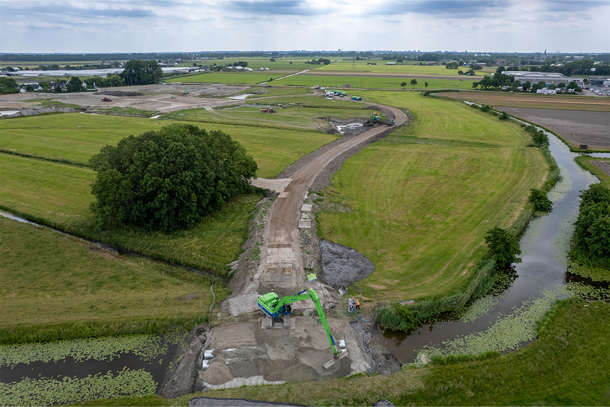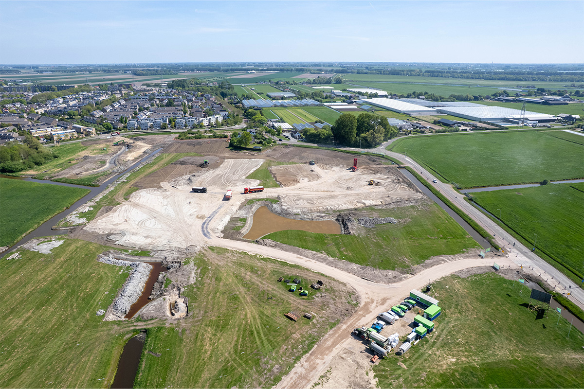 In Lisse wordt volop gewerkt aan nieuwbouwproject Geestwater. Geestwater wordt een groene woonbuurt op steenworp afstand van het dorpshart van Lisse. In fases komen hier ca. 450 woningen, variërend van koopwoningen tot (sociale) huurwoningen in alle prijsklassen. De Ringsloot loopt dwars door Geestwater en verdeelt het gebied in twee woonlandschappen. AW Infrabouw en AW Grondstoffen bundelen bij dit project de krachten om het project zo circulair efficiënt mogelijk te realiseren. Dankzij slim hergebruik van grondstoffen en een sterke lokale samenwerking met andere partijen, is dit project een voorbeeld van circulair werken. Wij spraken Dirk Lange, grondstoffen coördinator bij AW Grondstoffen, en Tino Geerlings, projectleider AW Infrabouw, over de uitvoering. Tino: “Het is prachtig om mee te werken aan de realisatie van woningen in mijn eigen dorp!”
