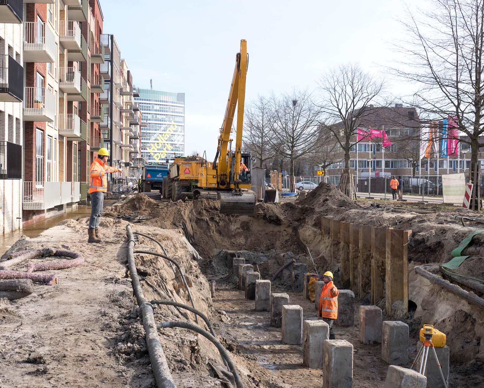Dit is een unieke wijk met sfeervolle grachten, prachtige gevels en groene binnentuinen. De werkzaamheden van AW Infrabouw bevinden zich middenin deze nieuwe woonwijk met o.a. ruim 2000 appartementen.
