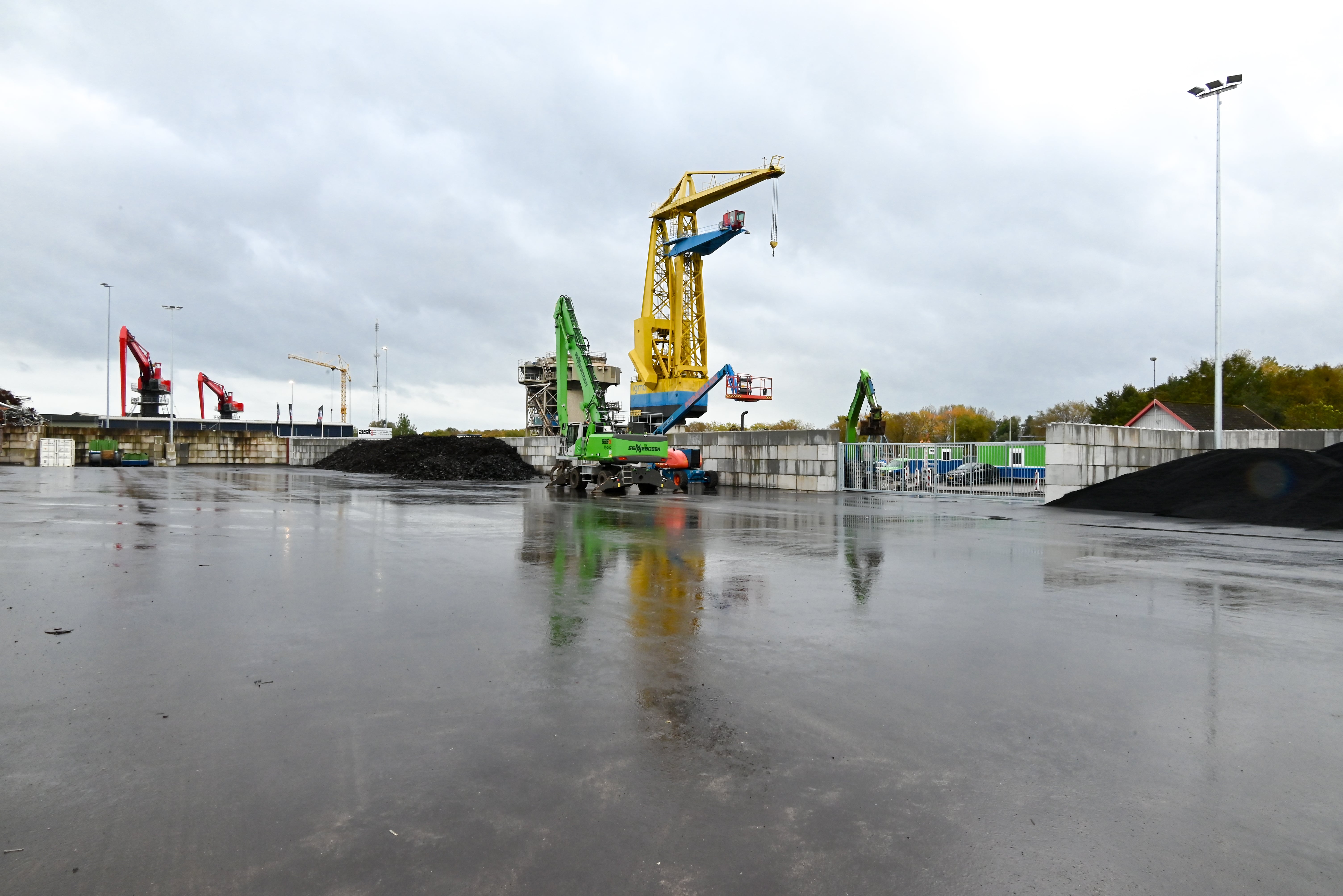 Nadat we het volledige terrein hebben geïnventariseerd is de bestaande funderingsconstructie opgebroken. Dit bestond uit asfalt en gebonden funderingsmateriaal van slakken. Er kwamen drie varianten vrij; brokken, gefreesd asfalt en gebroken asfalt, het laatste hebben we ter plaatse met onze eigen mobiele breekinstallatie gebroken. De brokken teervrij asfalt en het onder de frees vrijgekomen freesasfalt zijn direct afgevoerd naar een in de buurt gelegen asfaltcentrale.