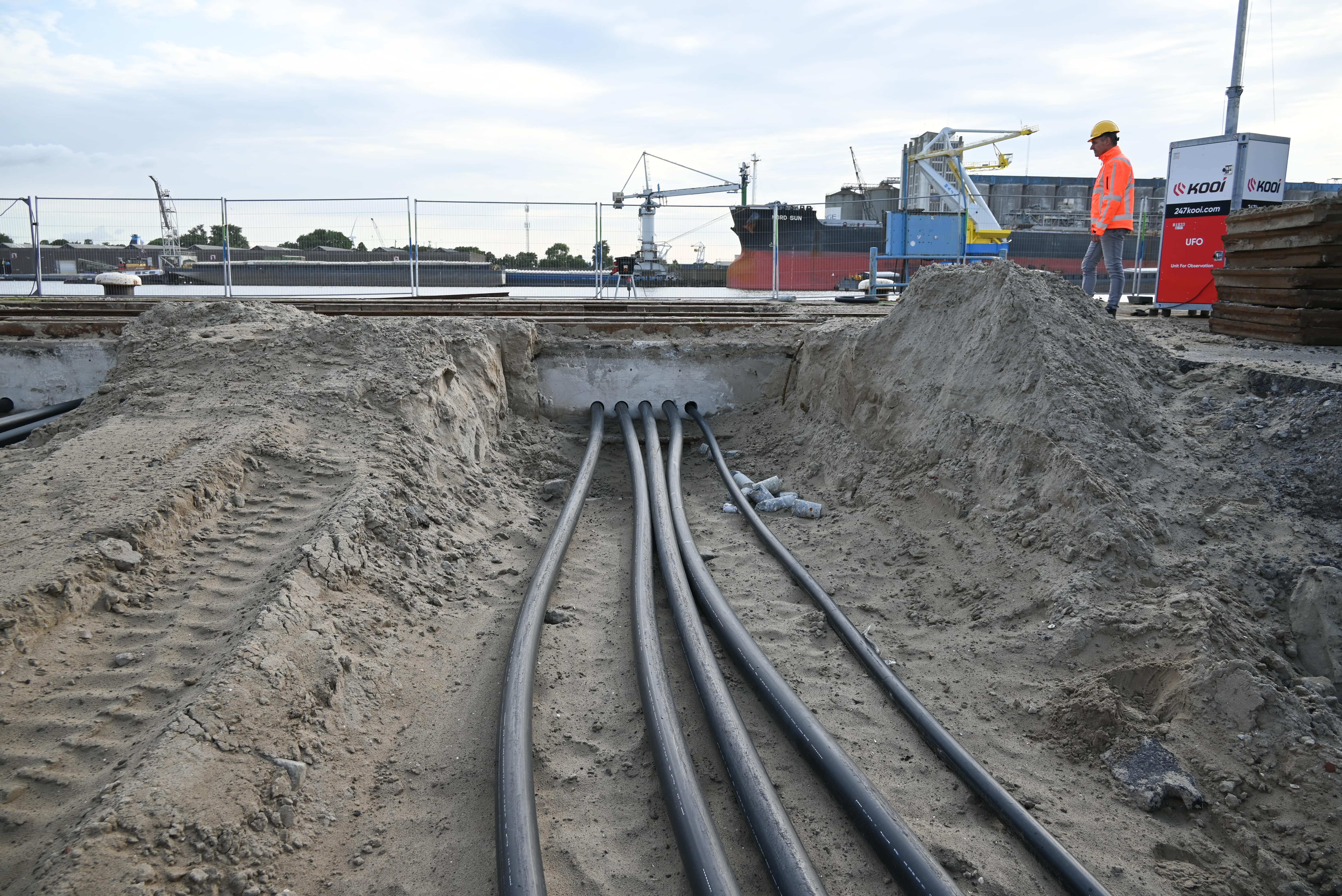 In het havengebied van Amsterdam hebben wij een duurzame herontwikkeling gerealiseerd. Op het vlothaventerrein is de bestaande fundering opgebroken, het asfalt gerecycled, en is er een modern rioleringsstelsel met waterzuivering geïnstalleerd.