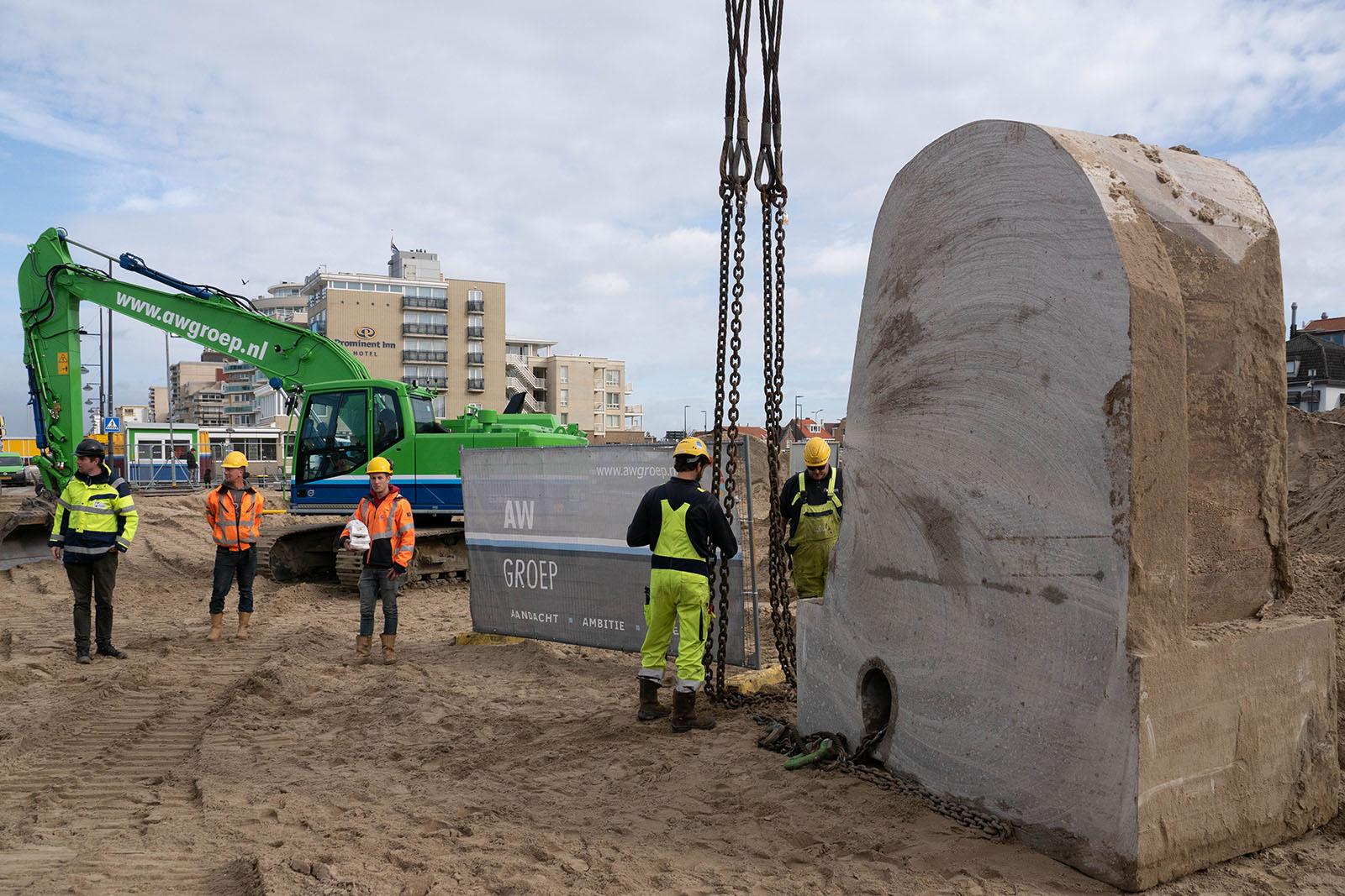 Nadat de 'plakken' werden afgezaagd, zijn ze uit de diepte gehesen. Boven op de kant zijn de elementen rechtop gezet. In het verleden is de Atlantikwall middels een diepe ontgraving naast de muur omgekanteld in het gat. Uiteindelijk is één element op het Palaceplein geplaatst als monument. Het tweede deel is door de gemeente Noordwijk ter beschikking gesteld aan het Atlantikwall Museum Noordwijk. Als dank voor de inzet kregen alle medewerkers van AW Groep toegangsbewijzen voor het museum.