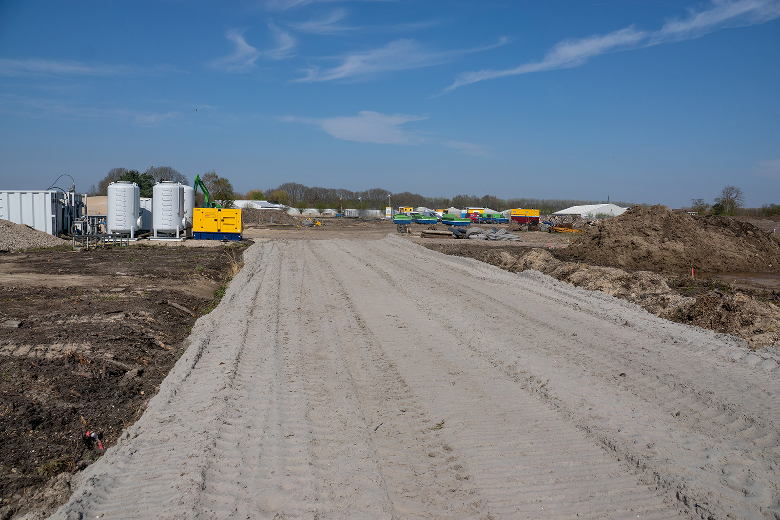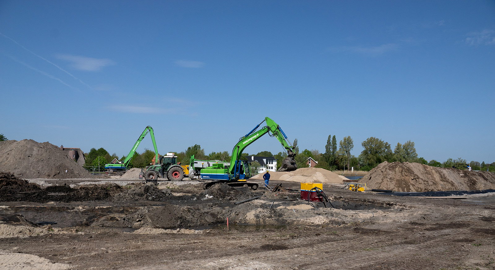 Het project heeft een doorlooptijd van ongeveer 2,5 jaar. Wij zijn gestart met het saneren en vervolgens wordt er ongeveer 9 maanden niets met het eiland gedaan i.v.m. het behalen van zettingen. Daarna komen wij terug om het eiland bouwrijp te maken, worden de zelfbouwkavels bebouwd en komen wij tot slot terug voor het woonrijp maken.