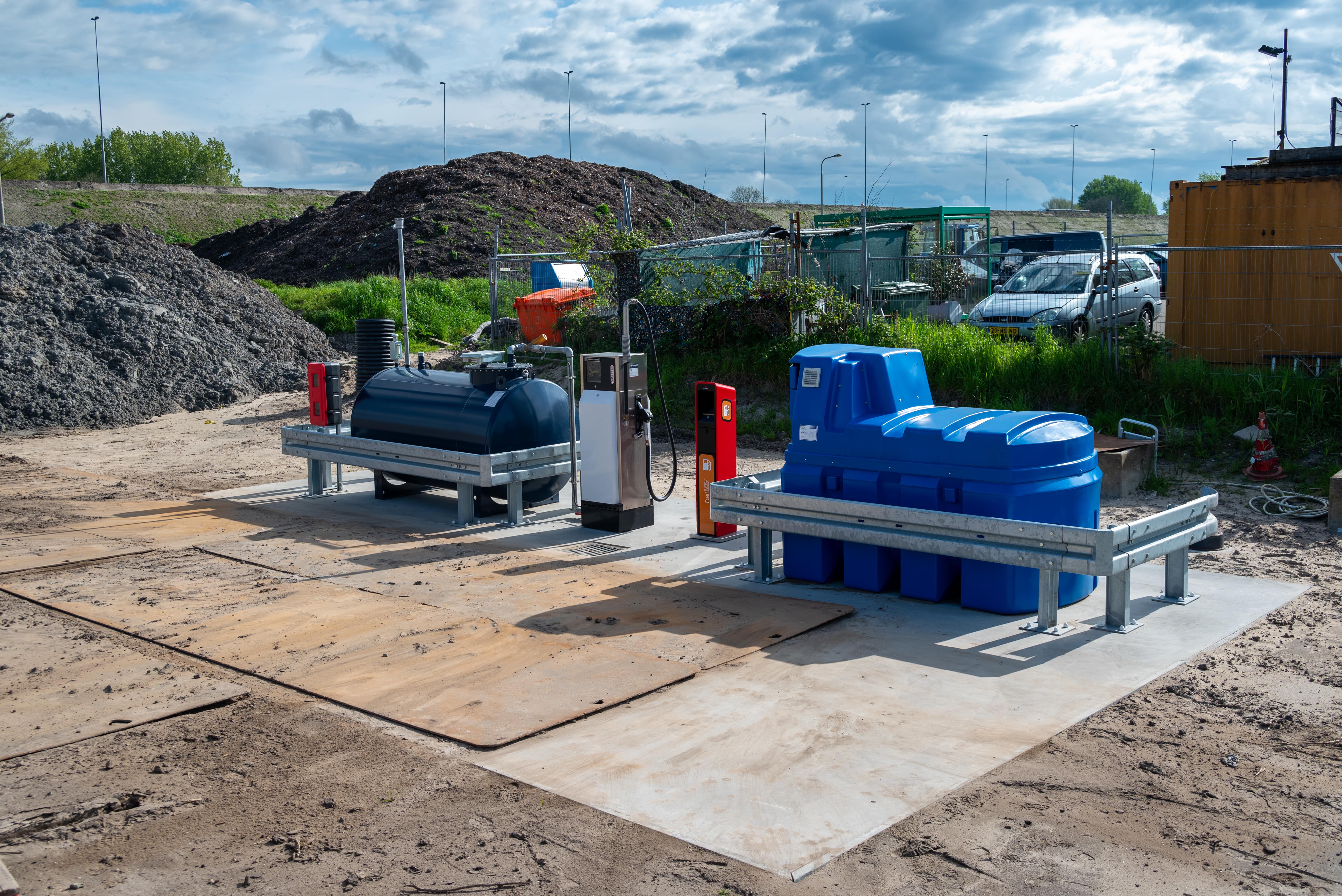 Er is een geavanceerde tankplaats gerealiseerd met een vloeistofdichte betonvloer en olieafscheider, waar vervolgens een moderne tankinstallatie geïnstalleerd is, waardoor gemeentelijke voertuigen milieuvriendelijk HVO100 diesel en AdBlue kunnen tanken.