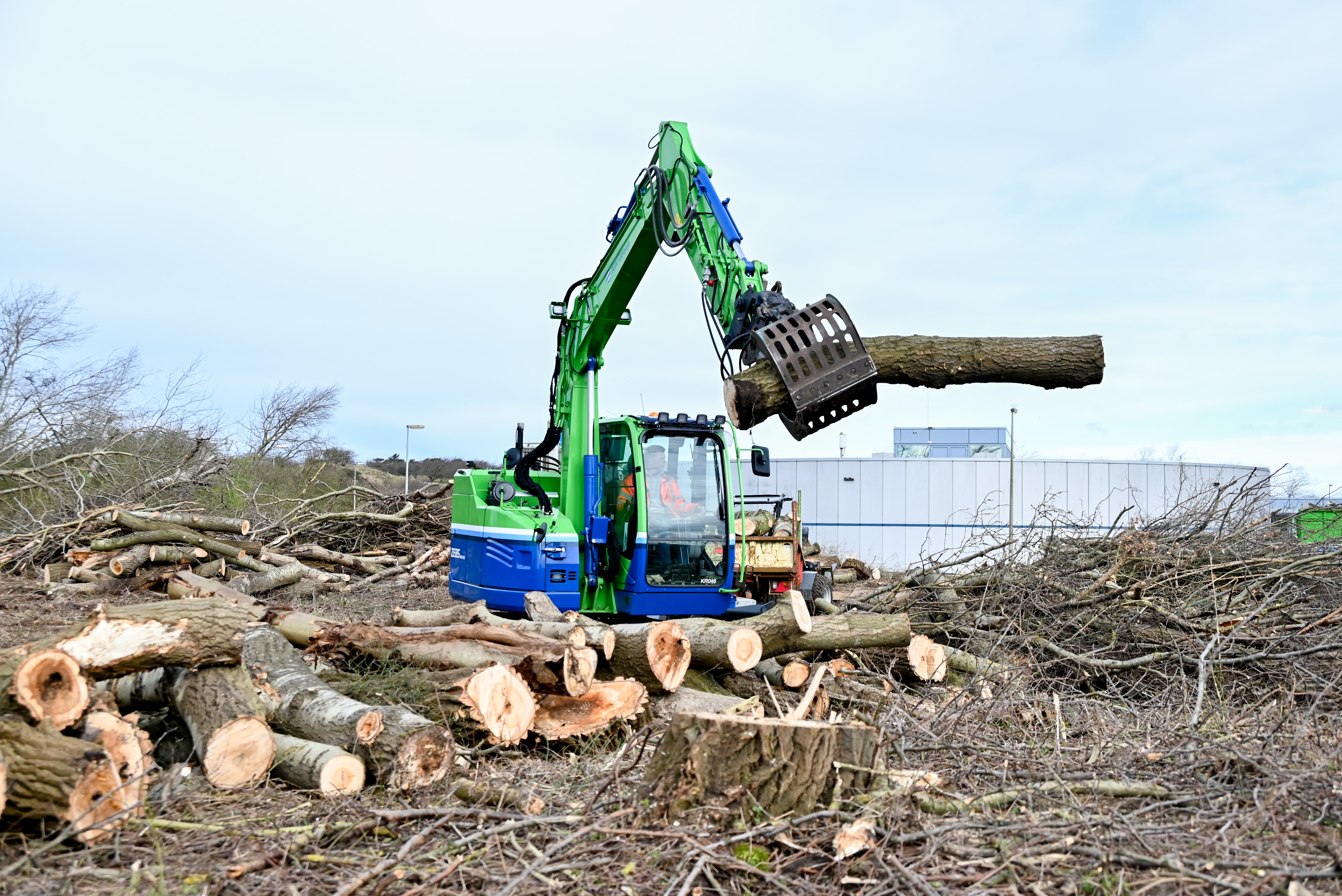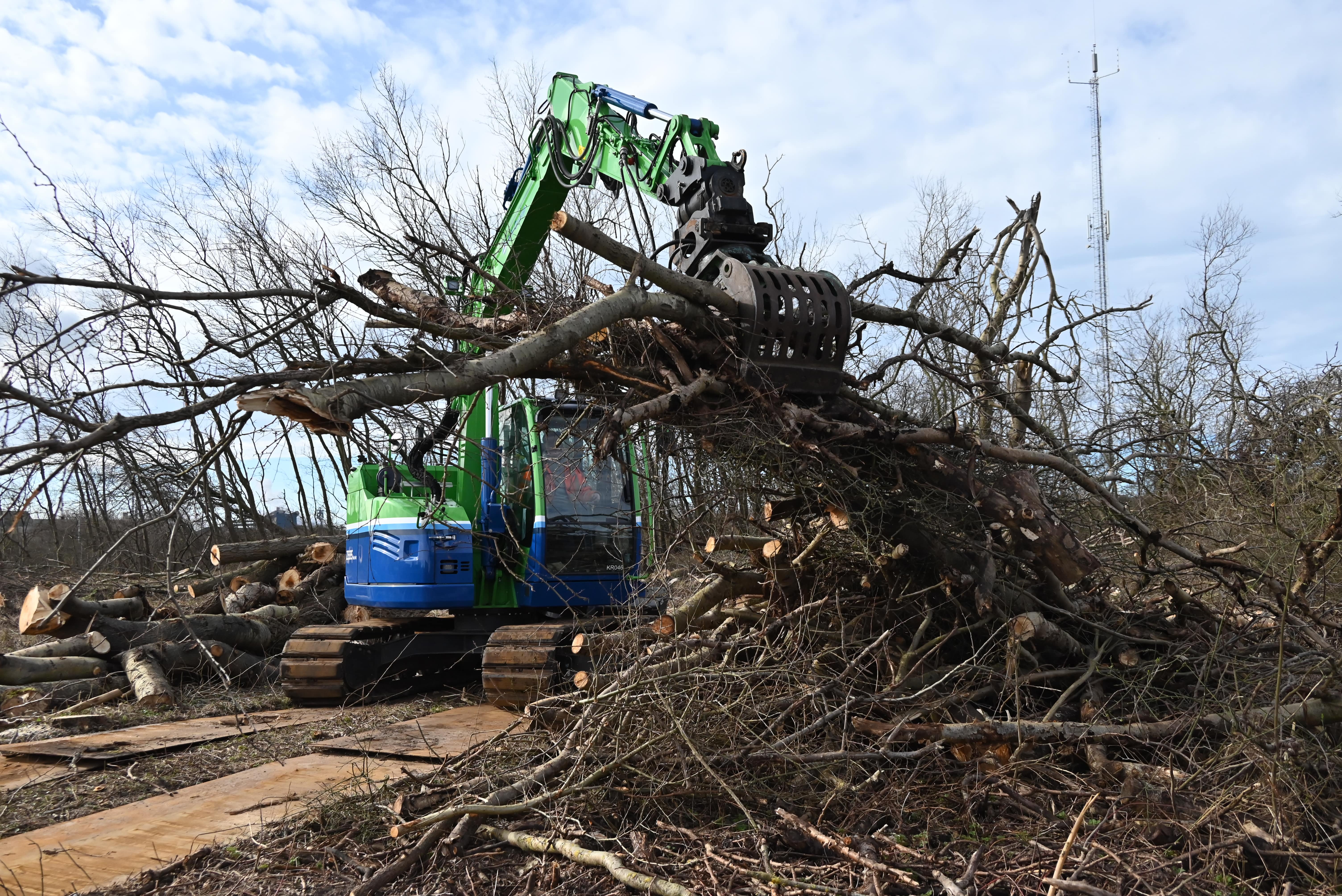 De uitrusting voor dit project omvat een elektrische 8 tons rupskraan, een elektrische shovel, een 3,5 tons elektrisch kraantje en ook onze elektrische vrachtwagen. Ook handgereedschap, zoals kettingzagen en bosmaaiers, werkt op elektriciteit. Een bijzondere uitdaging vormde het voortdurend verleggen van rijplaten om de ondergrond niet te verstoren of te beschadigen. Een taak die onze vaardigheden en vastberadenheid op de proef stelde.