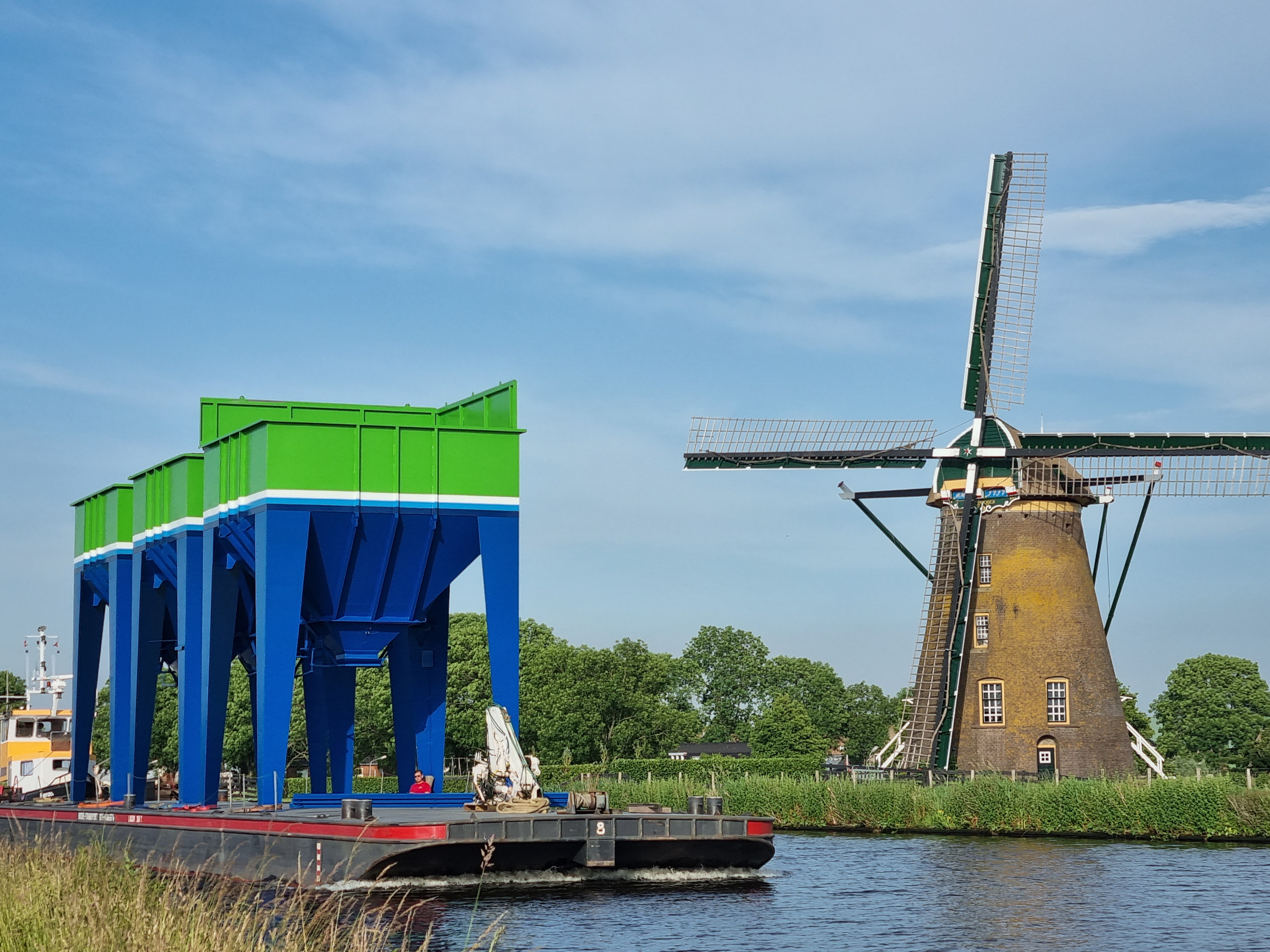 De oplettende voorbijganger was het misschien al wel opgevallen. De trechters van AW Grondstoffen aan de Ringvaart zijn terug van weggeweest. Gezien het formaat en gewicht waren er niet veel bedrijven die de ruimte hadden voor zo’n grote klus. Constructiebedrijf & Machinefabriek Bos Wieldrecht heeft uiteindelijk de taak op zich genomen. Eerder dit jaar vertrokken de trechters naar Dordrecht en afgelopen vrijdag zijn ze weer teruggeplaatst op de vertrouwde plek. Wel zijn de trechters per stuk zo’n 5000 kilo aan staal rijker en uiteraard voorzien van de AW kleuren.